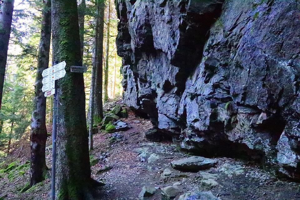 Die wenig bekannte Teichschlucht zwischen Gütenbach und Simonswald hat es ganz schön in sich. Sie ist wild und bietet spektakuläre Abschnitte. Wer sie durchschreitet (oder besser durch klettert), sollte in jedem Fall trittsicher sein und über eine gute Kondition verfügen. Erreichbar ist die Teichschlucht am besten über den Wanderweg ab Gütenbach (Wanderparkplatz Felsenkeller). Von dort geht es auf einer Fahrstraße etwa einen Kilometer bergab bis zum Ende der Sackgasse.