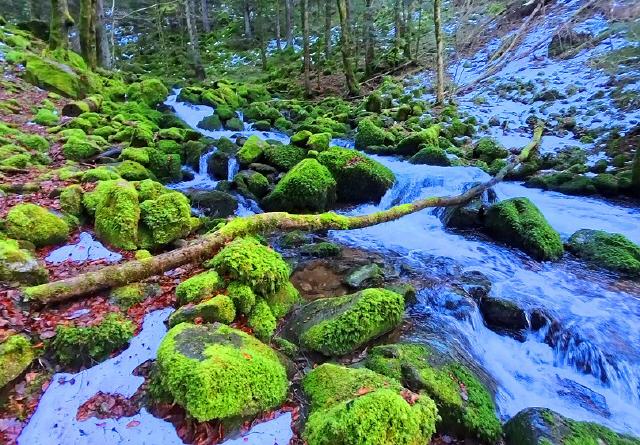 Tief im Klosterwald von Friedenweiler im Hochschwarzwald liegt die letzte Floßbachanlage im Einzugsgebiet der Wutach. Früher wurde aus dem Wald der Fürsten von Fürstenberg über einen Floßkanal Scheitholz entlang von Krähenbach und Gauchach geflößt. Das Holz wurde dazu gebraucht, die Bürger in Donaueschingen mit Brennmaterial zu versorgen. Bild antippen!
