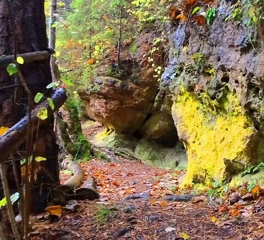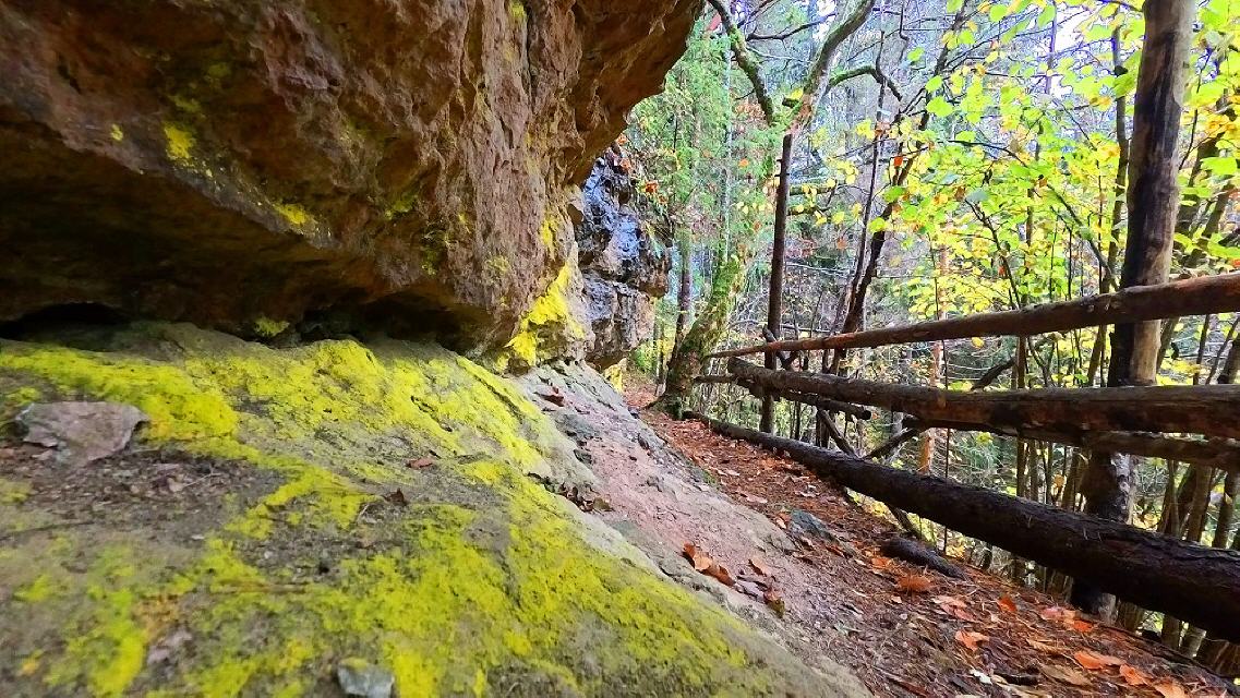 Das Kräuterweib soll in einem Felsen gehaust haben. Tatsächlich trifft man bald auf eine Höhle, das Nanteleloch. Es ist gut zu finden. Eine Begehung ist jedoch nicht möglich, denn man muss bäuchlings hineinrutschen. Nach zwei Menschenlängen ist dann Schluss. Damit ist die Annahme widerlegt, dass sich hinter dem Felsen ein Saal befindet, wie der Volksmund annimmt.