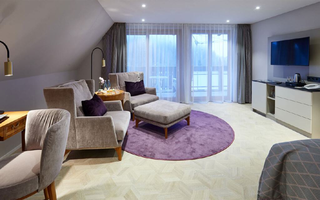 Unsere Zimmer und Suiten bestechen durch ihr stilsicheres Design und ihre großzügige Ausstattung mit vielen hochwertigen Verwöhn-Extras. Der gekonnte Mix aus exquisiten Materialien und warmen Farben verleihen dem Interieur harmonische Behaglichkeit. Die geschmackvolle Einrichtung strahlt ein edles und zugleich warmes Flair aus.