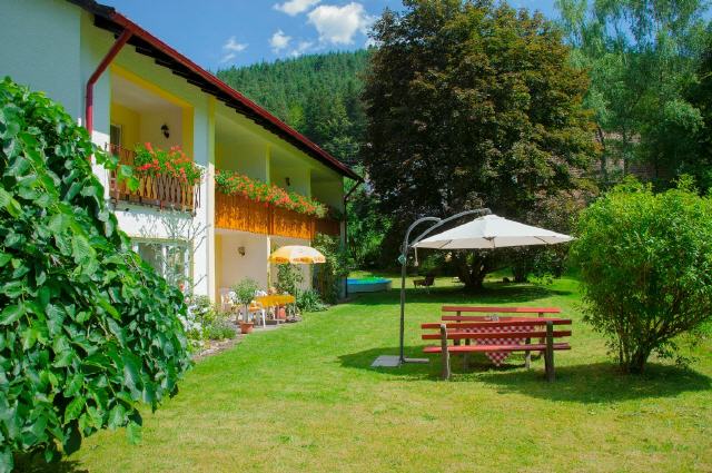 Die Pension Schwarzwaldhausan der Enzpromenade in Enzklösterle im Nordschwarzwald ist ein familiär geführtes Haus, das mit viel Liebe zum Detail nach Schwarzwälder Tradition ausgestattet ist. Es ist ein echtes Schmuckkästle und bietet sowohl gemütlich eingerichtete Gästezimmer (Einzel und Doppel), ein Appartement als auch eine Ferienwohnung. Die Preise sind sehr günstig. Preis ab 47 Euro. Bild antippen!