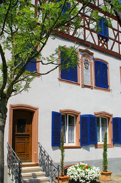Das heutige Rathaus auf der Südseite war bis 1850 das Gasthaus „Zur Sonne", wie das Sonnensymbol mit der Jahreszahl 1767 über dem Eingangsportal zeigt. Das Anwesen wurde 1850 von der Gemeinde gekauft und zunächst als Armenhaus eingerichtet. 1880 erfolgten der Einbau eines Schulzimmers und einer Lehrerwohnung im Obergeschoss und eines Ratszimmers mit Archiv im Erdgeschoss. Zwischen 1885 und 1887 entstand das Türmchen mit Gemeindeglocke und Turmuhr. 1925 baute man das Feuerwehrgerätehaus mit dem 15 Meter hohen Schlauchturm an. Mit steigender Bevölkerungszahl wurden im Gebäude immer mehr Verwaltungsräume notwendig, sodass der letzte große Umbau und Erweiterungen von 1979 bis 1983 stattfanden.