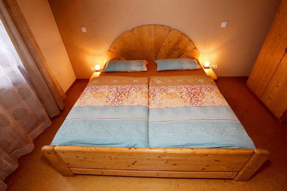 - Schlafzimmer: Doppelbett 200 x 200 cm, Kleiderschrank, Kofferablage, Korbstuhl, Nachtleuchten, Betten sind bezogen