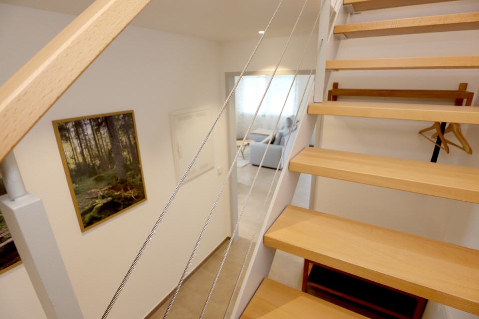 Willkommen in Schönwald im Hochschwarzwald – Ihrer Auszeit auf 1000 Metern Höhe. Unsere moderne Ferienwohnung Schönwaldblick (80 qm + Balkon) wurde 2022 fertiggestellt und liebevoll eingerichtet. Sie erstreckt sich über zwei Stockwerke – das untere Stockwerk mit Küche und Wohnzimmer ist komplett barrierefrei und rollstuhlgerecht.