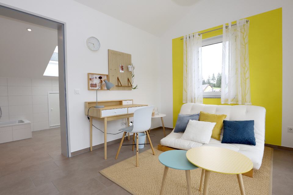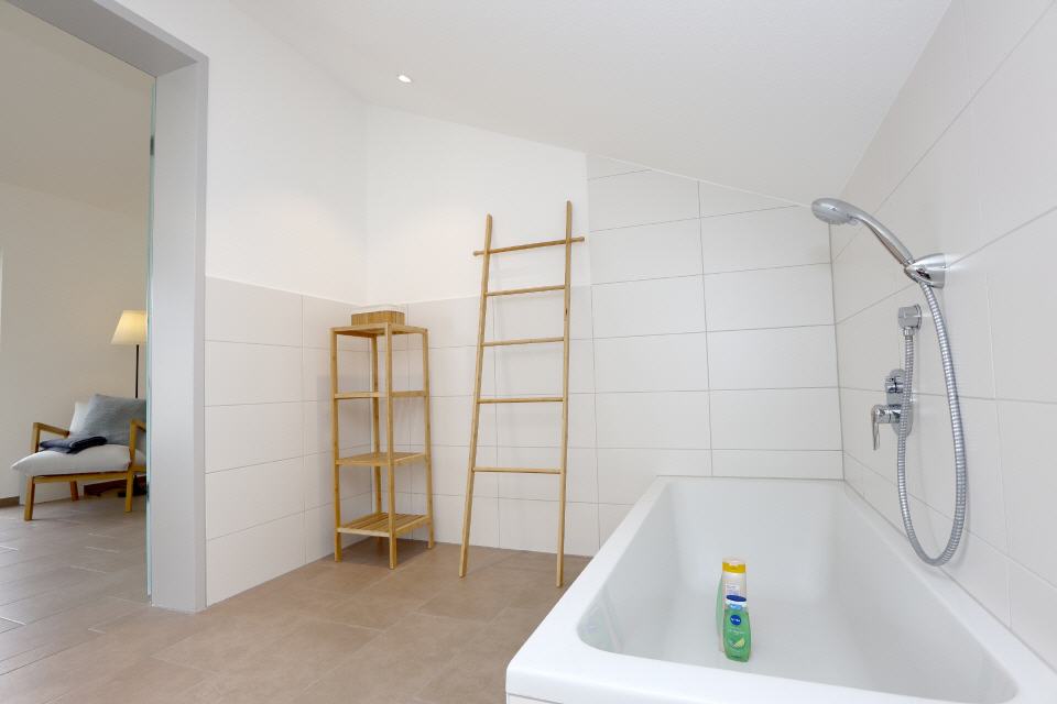Stockwerk mit extra Zimmer, Bad mit Badewanne, Sofa und Dachterrasse