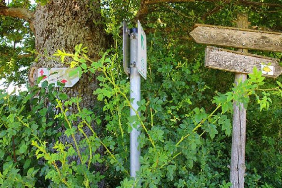 Anmerkung: Wer glaubt, am Rosenwanderweg Tausende Rosen zu entdecken, wird enttäuscht sein. Nur im Dorf Nöggenschwiel erfreuen Sie sich über ein Meer an Rosenstöcken; auf dem Wanderweg sind nur an einzelnen wenigen Stellen Rosen gepflanzt. Auch die versprochenen “Rosenstationen” mit Informationen über die Rosenarten sind eher spärlich. Im Grunde handelt es sich um einen ganz gewöhnlichen Rundwanderweg, der allerdings zu großen Teilen auf Asphaltstraßen geführt wird.