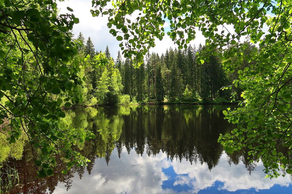Dein nächstes Zwischenziel ist der versteckt im Naturschutzgebiet liegende Mathisleweiher. Hier kannst Du eine gemütliche Pause einlegen. Gestärkt gehst Du dann auf dem ansteigenden Weg bis zum Häuslebauernhof, wo Du den grandiosen Blick auf das Feldbergmassiv genießen kannst. Am naheliegenden Milchhisli kannst Du Dich mit einem gekühlten Getränk erfrischen (kostenpflichtig). Durch den dichten Nadelwald wanderst Du weiter aufsteigend bis auf den Bisten und anschließend auf den Windeckkopf (1209 m). Bei der Bergstation der Thoma-Skilifte kannst Du eine fantastische Aussicht genießen, dieses Mal über Hinterzarten bis zum Hochfirst und zur Weißtannenhöhe.