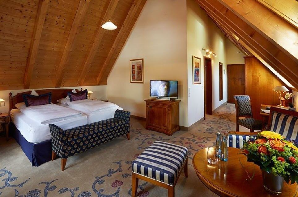 Junior-Suite Glottertal. Junior-Suite, 48 qm, möblierter Balkon 12 qm oder Loggia 6 qm, Südwestseite zum Garten, mit Nachmittags- und Abendsonne. Das Interieur dieser beiden Suiten verzaubert Sie mit geschmackvollem Landhausstil gepaart mit modernem Edel-Touch: Die Suiten Glottertal bestichen durch ihre unaufdringliche Behaglichkeit in einem perfekt abgestimmten Mix aus charmanten Stilelementen. Warme Hölzer und heitere Farben schaffen ein behagliches Wohn-Ambiente. Ein geräumiges und ruhiges Doppelzimmer mit Nachmittags- und Abendsonne, das Ihnen einen herrlichen Blick auf die gepflegten Gartenanlagen gewährt.