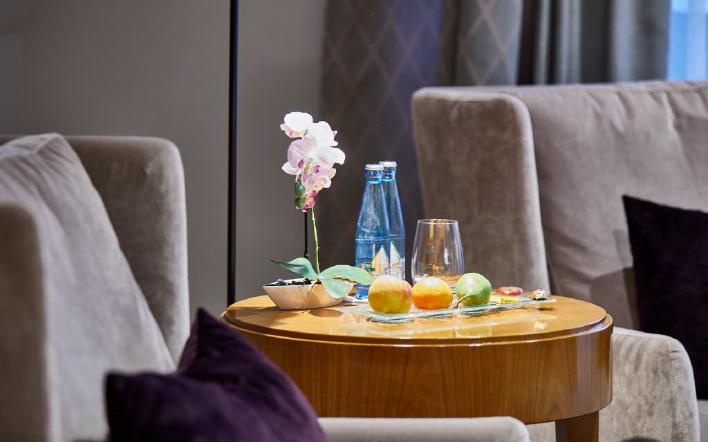 Unsere Zimmer und Suiten bestechen durch ihr stilsicheres Design und ihre großzügige Ausstattung mit vielen hochwertigen Verwöhn-Extras. Der gekonnte Mix aus exquisiten Materialien und warmen Farben verleihen dem Interieur harmonische Behaglichkeit. Die geschmackvolle Einrichtung strahlt ein edles und zugleich warmes Flair aus.