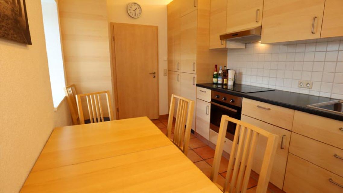gut ausgestattete Wohnküche mit großem Esstisch