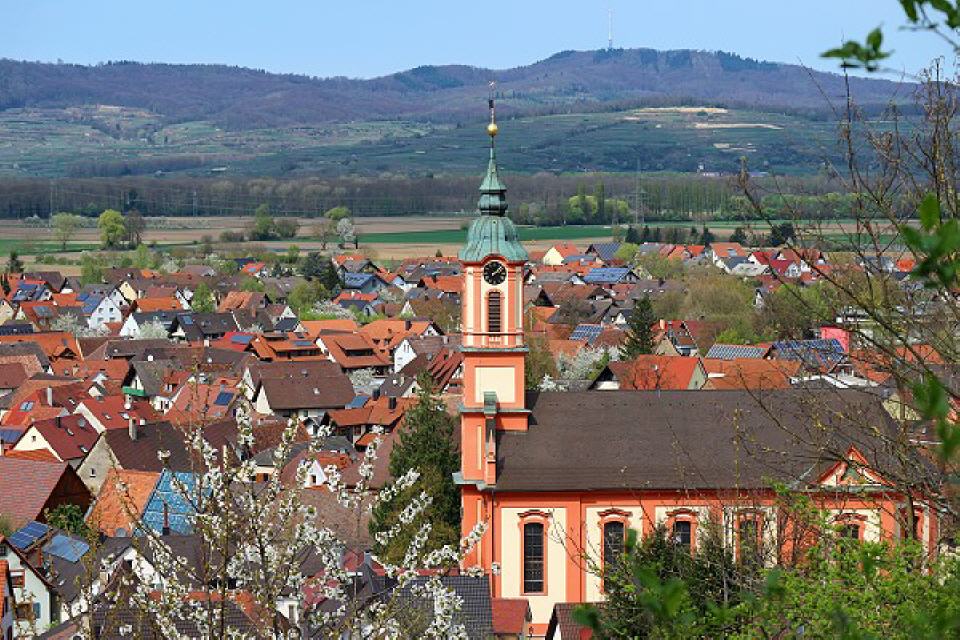 Von hier aus hat man einen traumhaften Ausblick auf den nahegelegenen Schwarzwald und die Vogesen. Das milde Klima und die fruchtbaren Lößböden bieten geradezu ideale Voraussetzungen für den Anbau von Wein, Obst und Spargeln.